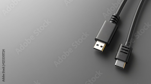 High Resolution Image of HDMI and USB C Cables on Gray Background