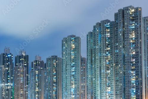 High rise residential buiilding in Hong Kong city at night