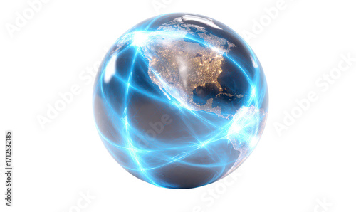 High Tech Globe with Data Lines Emphasizing Connectivity Isolate on Transparent Background, cutout, png