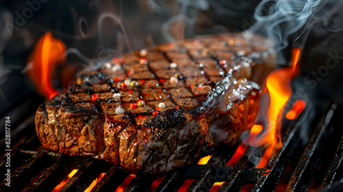 image, steak, sizzling, hot, grill, light, shadow, highlighting, smoke, scorching, mark