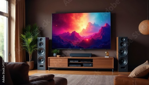 High-end bookshelf speakers in home theater setup, entertainment, amp