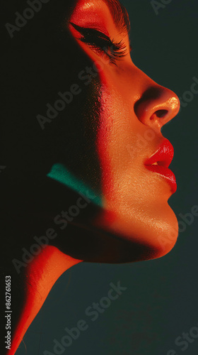 highend makeup, just-face, fashion photo shoot, elegance-aesthetics, side-view, close up