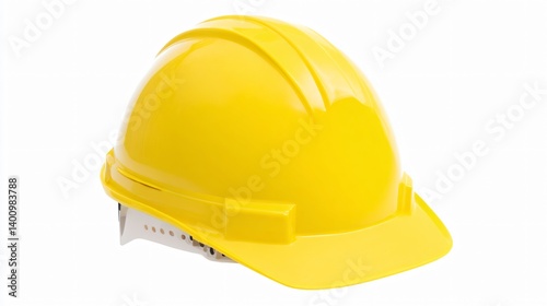 High-gloss yellow construction helmet in clean studio light with subtle shadow details – protective headgear Image 4K UHD