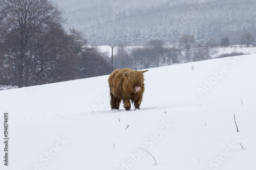 brown, field, field, glen, art, mood, environment, habit, behaviour, closeup, portrait, wildlife, wild, herbivore, meat, family, 2, eye, nose, snout, horn, winter, cold, female, young, natural, nature, animal, mammal, thick, wax, wavy, long hair, breed, scottish, scotland, highland, browsing, foraging, snow, farm, domesticated, herd, fold, cattle, coo