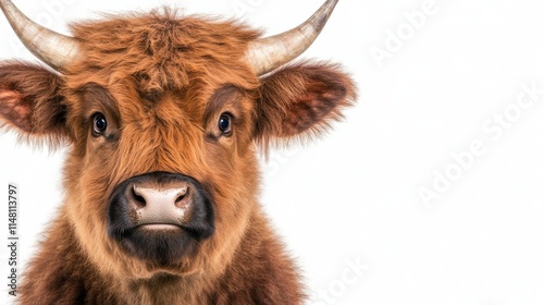 Highland Cow Portrait Gentle Eyes, Fluffy Fur