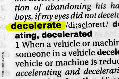 decelerate, vehicle, accelerate, speed, slow, dictionary, definition, word, highlighted, meaning, sense, english, concept, language, closeup, book, significance, macro, text, white, paper, glossary, paragraph, horizontal, message, printing, explain, typography, yellow, explanation