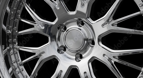 chrome, wheel, alloy, rim, spoke, automobile, car, tire, metal, polished, shiny, vehicle, transportation, automotive, luxury, design, style, detail, closeup, black, background, surface, texture, gloss, bright, gleam, shine, elegant, sophisticated, speed, performance, custom, aftermarket, modification, part, component, engineering, manufacturing, industry, circular, pattern, hub, center, cap, bolt, fastener