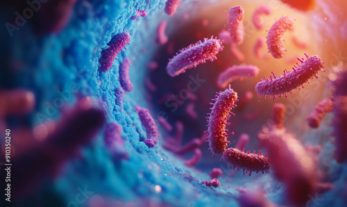 microbiota, guts, intestinal, flora, large, bowel, wall, structure, surface, photo, macro, closeup, detail, shot, illustration, science, research, colon, bowel, human, health-giving, medicals, microorganism, microbe, microbiology, community, immunity, balance, healthy, vibrant, bacterial, network, cellular, laboratory, colourful, organism, biotechnology, metabolism, molecular, render