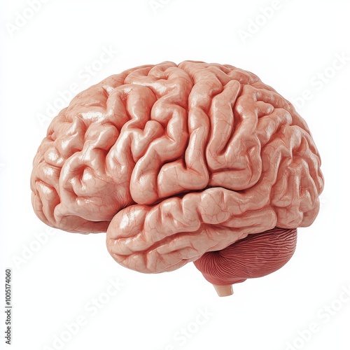 Highquality 3D illustration of a human brain with realistic texture and details displayed on a clean white background Ideal for use in medical presentations neuroscience research psychology and educat