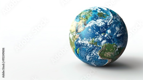 High-quality image of Earth from space, showcasing continents, oceans and atmosphere on a white background, emphasizing planet's beauty.