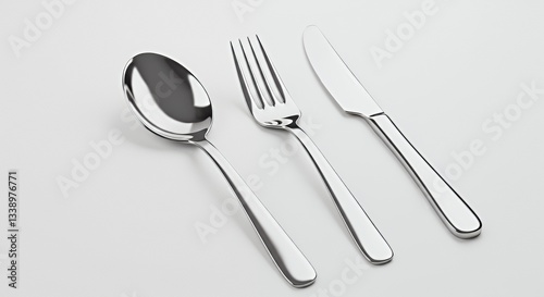 stainless steel, spoon, fork, knife, tableware, kitchen utensile, dining, eatery, elegant, modern, polished, high-quality, luxury, food, eating, set, kitchen, design, metal, silverware, closeup, studio shot, white background, retail, e-business, catalog, hotel, home decor, gift, table setting, food photography, glossy, minimalist, clean, brand, promotion, advertising
