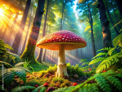 mushroom, aerial photography, fungal, forest, nature, photo, hi-res, fantasy, magical, colourful, high-coloured, vibrant, detailed, texture, photorealistic, intricate, sunlight, leaf, scene, art, illustration, image, picture, digital artwork, landscape, environment, ecosystem, mycology, fungal, botany, plant, wildlife, beautiful, stunning, amazing, breathtaking, picturesque, scenic