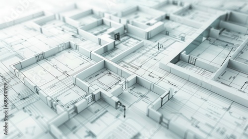 High-resolution image of a financial restructuring plan, visualized as architectural blueprints with sections labeled as different financial strategies