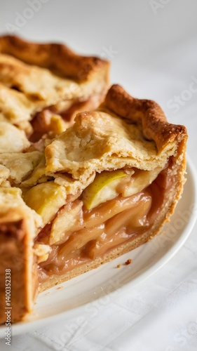 High-resolution image of a freshly baked apple pie slice with flaky crust, isolated on white – apple pie slice wallpaper – dessert wallpaper – apple pie image
