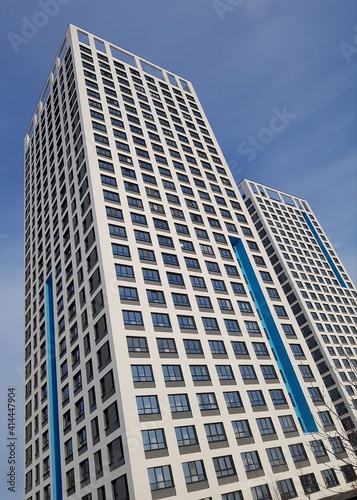 High-rise residential building on a background of blue sky