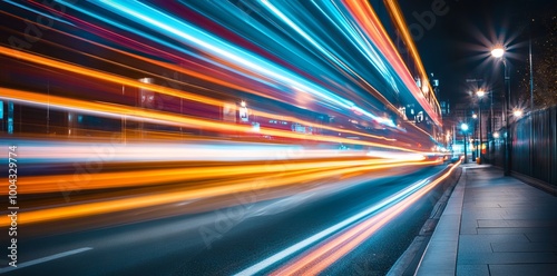 High-Speed Light Trails in the City at Night, AI generated illustration