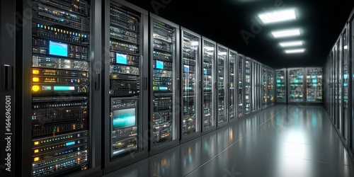 High-Tech Data Center with Powerful Servers, Advanced Networking Equipment, and Storage Solutions