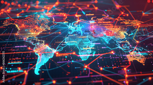 high technology, digital, map, country, bright, neon, colours, line, dot, network, connection, communication, pathway, technology, connection, global, design, concept, modern, tech, flow, information, system, visual, pattern, electronic, international, dynamic, aglow, interactive, web, integration, connectivity, futuristic, energy, vibrant, interconnected, light