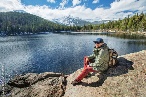 Hiker in Rocky mountains National park in USA