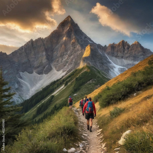 mountain, hiking, landscape, nature, adventure, mountain, hiker, trekking, people, travel, sky, hike, sport, path, rock, backpack, view, summer, alps, holiday maker, woman, walking, trail, peak