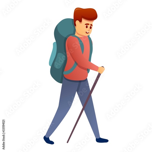 Hiker tourist icon. Cartoon of hiker tourist vector icon for web design isolated on white background