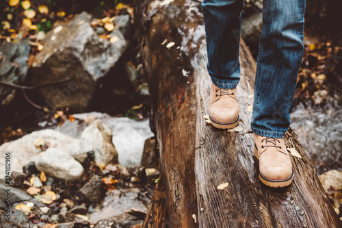leg, footwear, boot, river, autumn, fall, closeup, hiker, hiking, hike, walk, foot, way, adventure, forest, wood, leisure, activity, trek, trekking, travel, walking, male, holiday maker, crossing, trail, comfortable, rain, wet, human, resistant