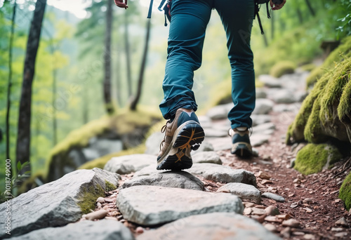 hiker, walking, rocky, trail, lush, forest, focused, expression, adventure, nature, activity, trekking, footwear, exploration, path, exercise, summer, athletic, stone, dirtied, greenery, fitness, wilderness, terrain, mountain, journey, leisure, landscape, fresh air, scenery, infused, backpack, personal, outdoors, calmness, connection, environment, healthy, motivation, determination