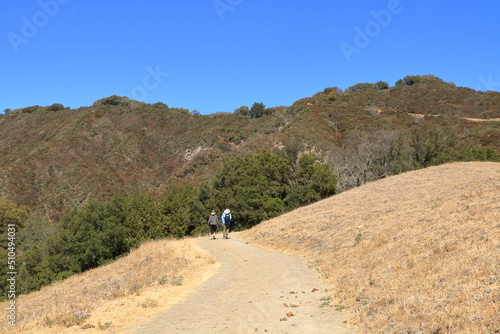 Hikers on the Las Trampas ridge in summer near Danville, California