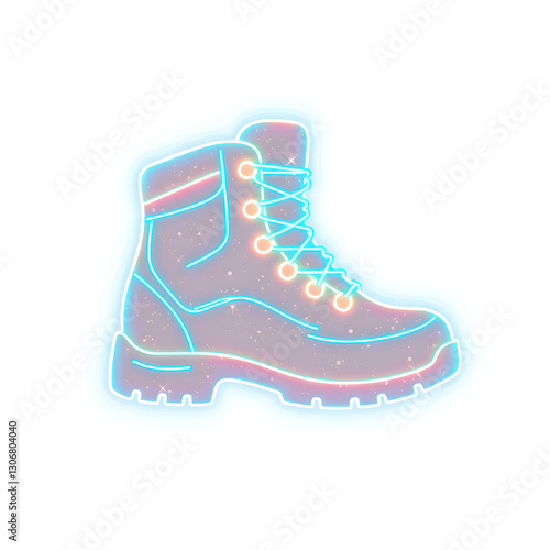 Hiking boots holographic 3D icon. neon symbol vector illustration isolated on white background. Generative AI
