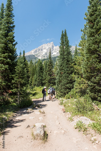 nature, hiking, forest, landscape, mountain, road, mountain, walking, grand teton, trail, hike, summer, travel, green, hiker, walk, family, people, tree, tree, sky, sport, path, view, tour tourism, holiday maker