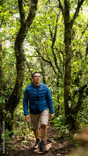 man, hiking, forest, nature, greenery, tree, jacket, khaki, short, adventure, trail, path, foliage, lush, dense, explorer, environment, landscape, travel, wanderlust, leisure, activity, timberland, natural, eco, journey, vegetation, exploration, fitness, trek, hike, backpack, male, wild, trekking, wilderness, sport, lifestyle, plant, wood, twig, green, hiker, walking, walk, looking away