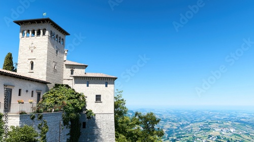 castle, stone, building, architecture, landscape, view, hilltop, tower, summer, sky, clear, day, sunny, horizon, city, town, village, countryside, rural, distant, high, elevation, perspective, exterior, old, ancient, historic, historical, travel, destination, tour tourism, vacation, holiday, scene, scenery, panorama, vista, wide, open, space, background, estate, property, luxury home, house, home, residential, structure