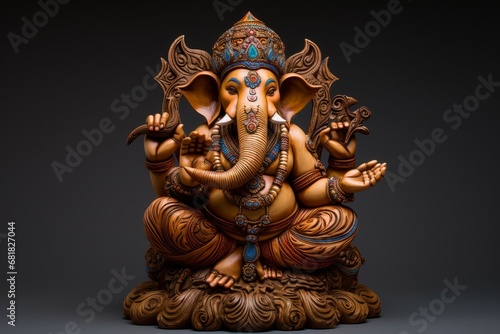 Hinduistic sculpture ganesha. Gold indian elephant. Generate Ai