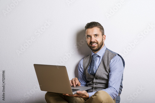 Hipster businessman with laptop