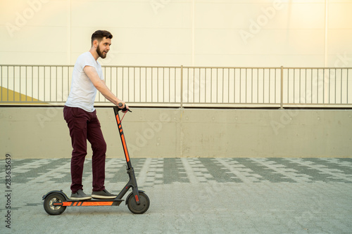 man, outside, energy, electric, active, beautiful, caucasian, city, day, drive, future, contraption, leisure, lifestyle, outdoors, person, ride, scooter, single, street, summer, tech, technology, transportation, urban, vehicle, young