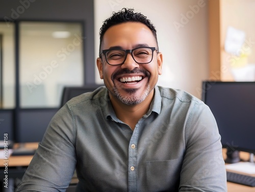 Hispanic happy smiling man in the office indoor