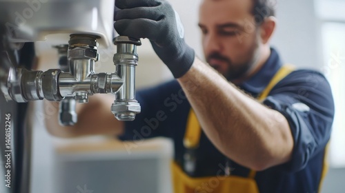 Hispanic plumber installing new pipes in a kitchen renovation. Featuring plumbing installation and home upgrades