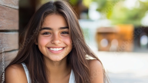 hispanic, teenage, girl, long, hair, smile, white, tank, top, happy, youth, fashion, lifestyle, portrait, beauty, smiling, confidence, casual attire, summer, style, attractive, cheerful, natural, look, joy, fun, teenage, relaxation, friendship, carefree, expression, femininity, playfulness, youthfulness, diversity, happiness, elegance, relaxed, self-esteem, high-coloured, culture, urban, trendy, bright, outfit, enjoyment