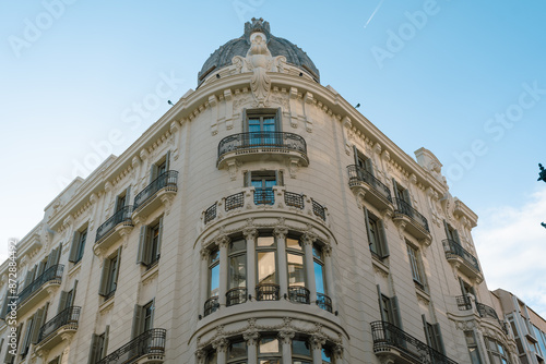 Historic building featuring a domed roof and ornate balconies. The elegant architectural design and detailed facade create a striking urban landmark.