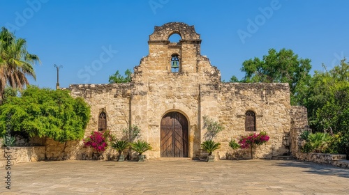Historic Stone Building with Vibrant Surroundings