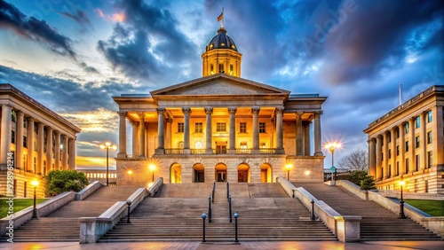 Historic Tennessee State Capitol building's grand staircase and ornate architecture dominate the scene, symbolizing democracy and governance in the Volunteer State's legislative hub.