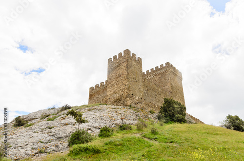 Historical fortified castle on a hilltop
