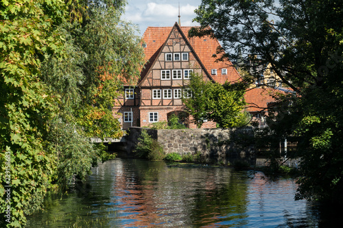 brick, clinker, red, architecture, half-timbering, house, mill, historic, water, reflex, romantic, idyl, tour tourism, tourist attraction, vacation, lower saxony, german