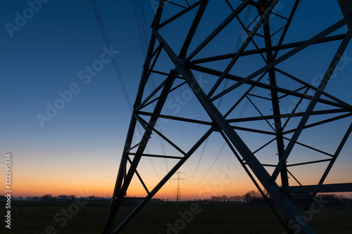 electricity, stream, steel, ecology, sunset, pylon, energy, cable, industry, high voltage, metallic, supply, wire, sunrise, technology, german, construction, substation, cloudy, nobody, daytime, outside, industrial, abstract, building, tower