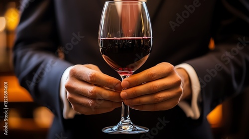 wine, glasses, holding, hand, person, wearing, suit, elegant, formal, drink, red, liquid, eatery, interior, indoor, closeup, celebration, tasting, alcohol, luxury, lifestyle, sommelier, serving, presentation, wine glass, stemware, fine, dining, dark, background, male, adult, professional, service, expertise, winery, event, relaxation, taste