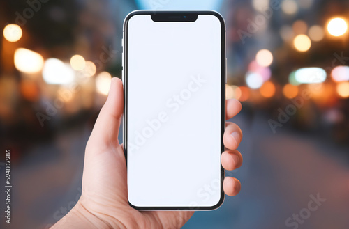 Holding Phone in Hand, White Screen. Generated with Generative AI Technology