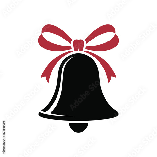 bell, silhouette, illustration, holiday, ribbon, bow, decoration, festive, seasonal, winter, element, design, greeting, graphic, ornament, shape, symbol, icon, clip art, art, drawing, outline, isolated, object, black, red, template, card, event, new year
