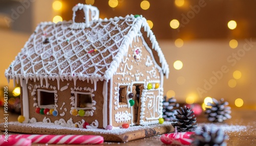 Holiday Gingerbread House- An elaborately decorated gingerbread house covered in icing