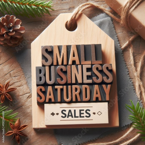 Holiday shopping concept with the words Small Business Saturday in rustic wood type