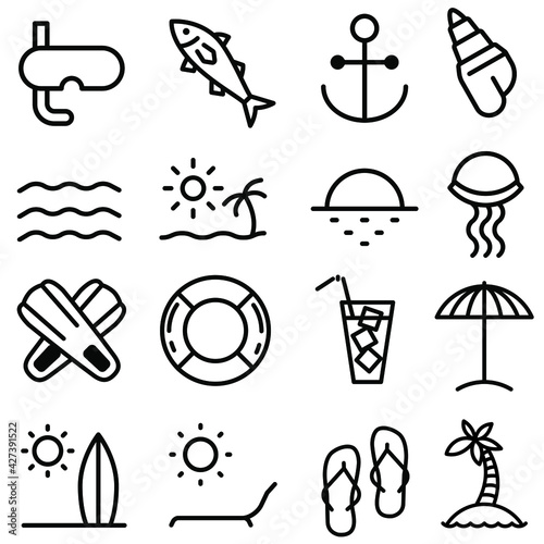 Holiday vector icon set. sea illustration sign collection. relaxation symbol or logo.